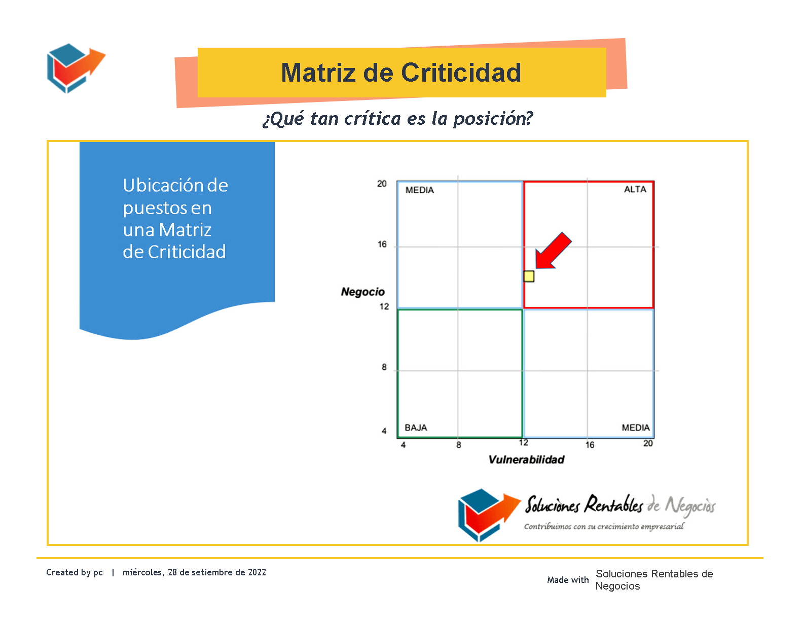 - Con el resultado, te permite ubicar la posición en una matriz de criticidad.